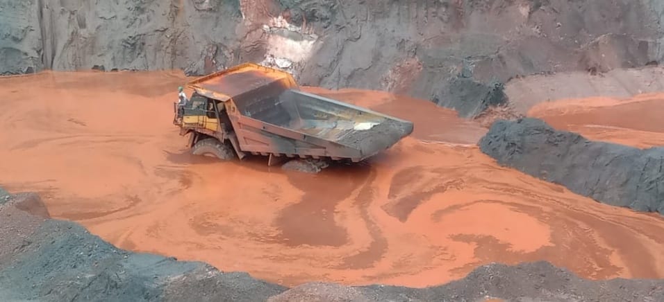 गुवा: शुक्रवार की शाम सेल की मेघाहातुबुरु खदान के नोर्थ बॉटम क्षेत्र में अचानक हुई मूसलधार बारिश ने सभी को संकट में डाल दिया. भारी बारिश के कारण खदान के निचले हिस्से में जलभराव हो गया, जिससे 100 टन क्षमता वाला एक हौलपैक (डम्फर) कीचड़ और पानी में बुरी तरह फंस गया. घटना के वक्त हौलपैक खनन कार्य में लगा था. तेज बारिश के चलते पल भर में पानी का स्तर इतना बढ़ गया कि डम्फर वहां से निकल नहीं सका. वाहन के भीतर सवार ऑपरेटर और हेल्पर भी खतरनाक स्थिति में फंस गए.
