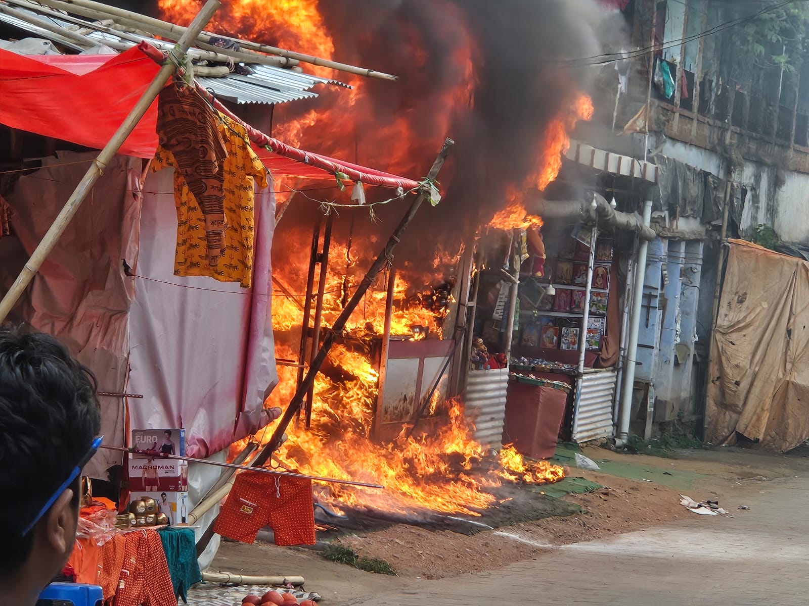 देवघर: शहर के लक्ष्मीपुर चौक के पास हरेक माल की अस्थाई दुकान में मंगलवार दोपहर मे भीषण आग गई। इससे इलाके में अफरातफरी मच गई। दुकान में बांस और प्लास्टिक की छप्पर थी, जिससे आग क्षण भर में ही फैल गई। स्थानीय लोगों ने पहले अपने स्तर से आग बुझाने का प्रयास किया, लेकिन देखते ही देखते लपटें तेज और बेकाबू हो गई। इसके बाद फायर स्टेशन को सूचना दी गई। मौके पर पहुंचे दमकल ने किसी तरह आग पर काबू पाया। उक्त दुकान मेला स्पेशल है, जो सालों भर रहता है।