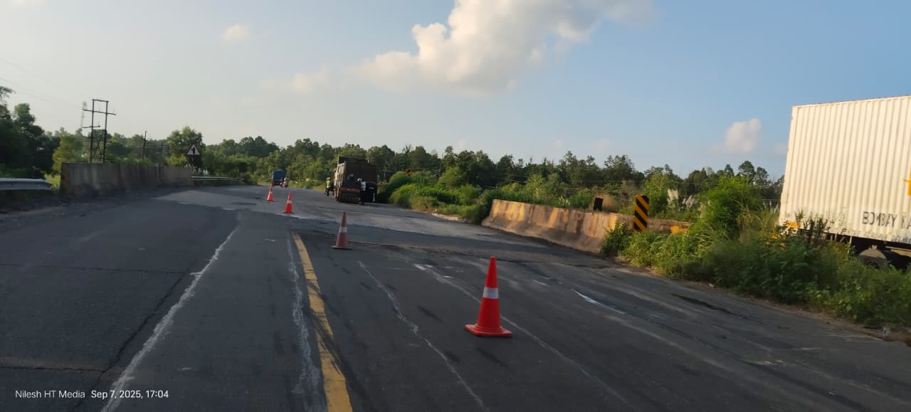 बहरागोड़ा: राष्ट्रीय राजमार्ग (NH-18) पर पुलों के ऊपर बने गड्ढों की मरम्मत का काम आखिरकार शुरू हो गया है। रडार न्यूज़ की लगातार रिपोर्टिंग के बाद भारतीय राष्ट्रीय राजमार्ग प्राधिकरण (NHAI) ने इस मामले में तेजी दिखाई। इससे इलाके के लोगों को काफी राहत मिली है।