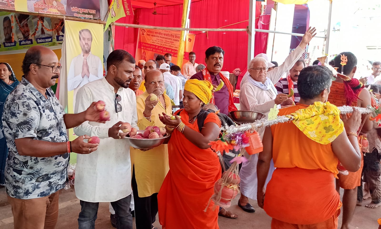 युवा राष्ट्रीय अध्यक्ष ध्रुव प्रसाद साह के नेतृत्व में गोड्डा से आए समाज के सदस्यों ने कांवरियों के बीच फल, ठंडा पानी, शर्बत और चाय का वितरण किया. साथ ही, लंबी यात्रा के थकान से जूझ रहे श्रद्धालुओं के पैरों में दर्द निवारक स्प्रे लगाकर उन्हें राहत भी प्रदान की गई.
