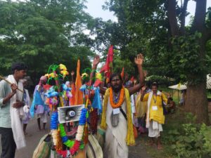 Bahragora: 400 किमी की पैदल यात्रा पर निकले कृष्ण भक्त, चरण पादुका संग पहुंचेगे पुरी