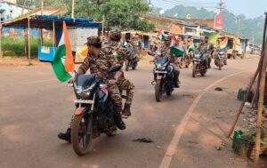 गुवा:  79वें स्वतंत्रता दिवस के उपलक्ष्य में डी/26वीं वाहिनी सीआरपीएफ, किरीबुरू ने मंगलवार को “हर घर तिरंगा” अभियान के तहत भव्य देशभक्ति बाइक रैली निकाली। रैली का नेतृत्व द्वितीय कमान अधिकारी प्रदीप कुमार सिंह, सहायक कमांडेंट एम.के. चौरसिया, निरीक्षक अंजु कुमार सिंह, सर्वेश प्रकाश सिंह, निरंजन कुमार सिंह और किरीबुरू थाना प्रभारी रोहित कुमार ने किया।