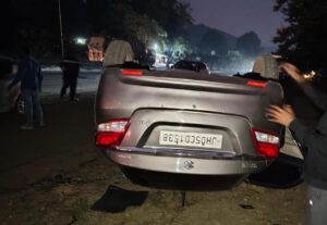 चांडिल: चांडिल थाना क्षेत्र के हुमिद के पास टाटा–रांची NH-33 पर शनिवार को एक भीषण सड़क दुर्घटना हुई। तेज रफ्तार मारुति सुजुकी कार अचानक अनियंत्रित होकर सड़क किनारे खड़े हाईवा में जा घुसी। टक्कर इतनी जोरदार थी कि कार उछलकर पलट गई और किनारे जा गिरी। कार का आगे का हिस्सा पूरी तरह टूट चुका था।