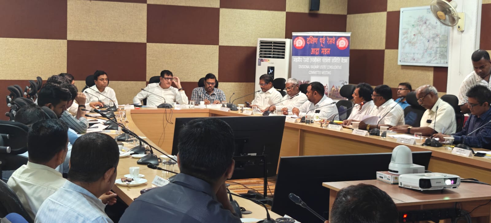 चांडिल : दक्षिण पूर्व रेलवे के आद्रा मंडल में 117वीं मंडलीय रेलवे उपयोगकर्ता परामर्श समिति (DRUCC) की बैठक का सफल आयोजन आद्रा मंडल कार्यालय स्तिथ सभागार कक्ष में किया गया। इस महत्वपूर्ण बैठक की अध्यक्षता मंडल रेल प्रबंधक सुमित नरूला ने की। इस अवसर पर अपर मंडल रेल प्रबंधक खगेन्द्र नाथ घोष, वरिष्ठ मंडल वाणिज्य प्रबंधक (समन्वय) सह DRUCC सचिव विकास कुमार, विभिन्न विभागों के वरिष्ठ अधिकारी एवं समिति के माननीय सदस्यगण—जिनमें माननीय विधायक/टुंडी माथुरा प्रसाद महतो, अन्य विधायक प्रतिनिधिगण, यात्री संगठन के प्रतिनिधिगण, पुरुलिया चैंबर ऑफ कॉमर्स के सदस्य तथा अन्य प्रतिष्ठित प्रतिनिधिगण उपस्थित रहे।