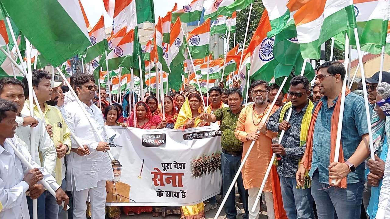 चांडिल : भाजपा नेता पप्पु वर्मा के नेतृत्व में चांडिल अनुमंडल क्षेत्र में तिरंगा यात्रा आयोजित की गई। तिरंगा यात्रा चांडिल डैम रोड से शुरू होकर पूरे चांडिल बाजार में भ्रमण किया। इस दौरान लोगों ने भारत माता की जयकारा के साथ ऑपरेशन सिंदूर की सफलता का जश्न मनाया और भारतीय सैनिकों की जयकार की। साथ ही, पाकिस्तान मुर्दाबाद के नारे भी लगाए। यह तिरंगा यात्रा जम्मू कश्मीर के पहलगाम में आतंकी हमले के बाद पाकिस्तान के खिलाफ भारत की ओर से की गई सैन्य कार्रवाई ऑपरेशन सिंदूर की सफलता के उपलक्ष्य में आयोजित की गई। भाजपा कार्यकर्ताओं ने भारतीय सेना के अदम्य साहस और पराक्रम को सम्मानित करने के लिए यात्रा निकाली।