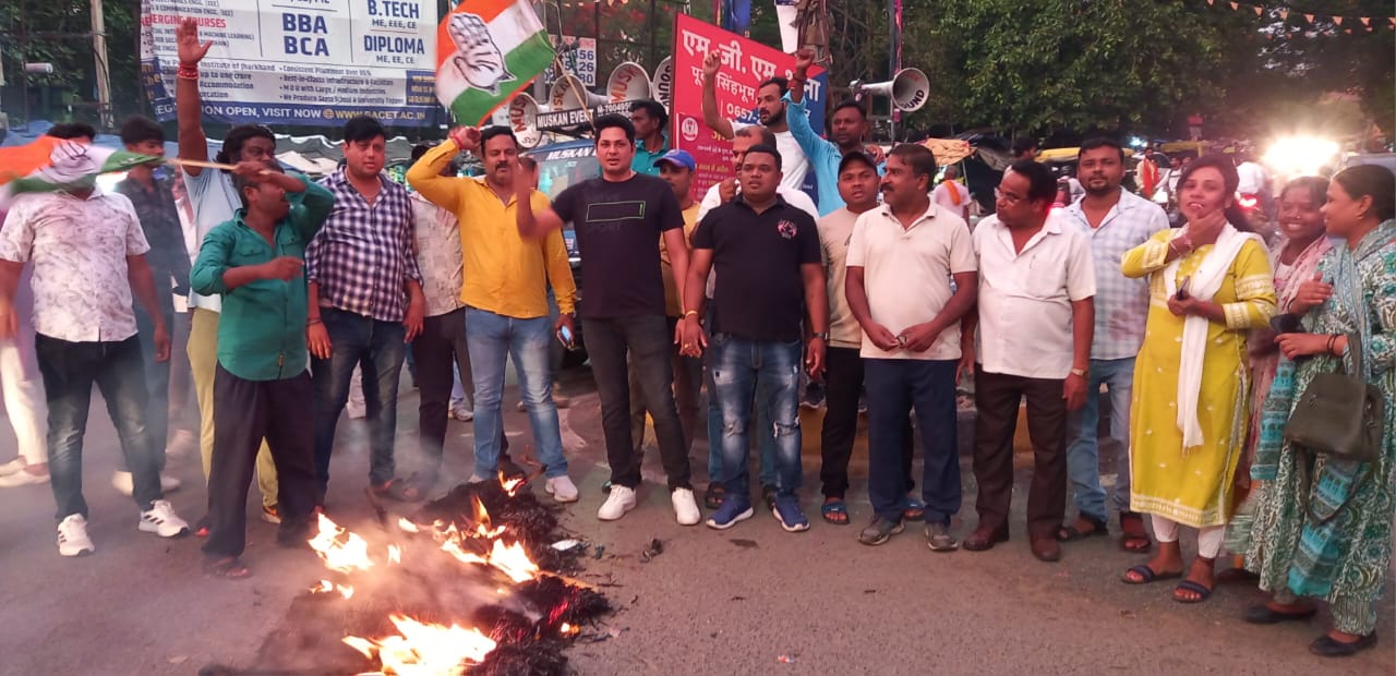 Jamshedpur: सेना पर टिप्पणी पर सियासत गरमाई, कांग्रेस ने फूंका भाजपा नेता का पुतला