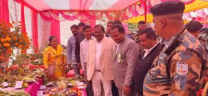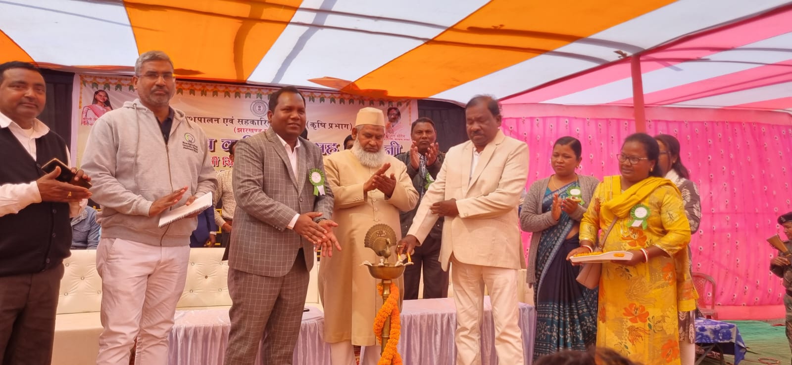 घाटशिला: कृषि विज्ञान केन्द्र, दारीसाई, घाटशिला में एक जिला स्तरीय किसान मेला-सह-प्रदर्शनी का आयोजन किया गया. इस कार्यक्रम में मुख्य अतिथि के रूप में मंत्री, स्कूली शिक्षा एवं साक्षरता विभाग रामदास सोरेन शामिल हुए. विशिष्ट अतिथियों में बहरागोड़ा के विधायक समीर कुमार मोहन्ती, जिला परिषद सदस्य देवयानी मुर्मू, सुभाष सिंह और पार्वती मुण्डा सहित अन्य जनप्रतिनिधि एवं आईटीडीए के परियोजना निदेशक दीपांकर चौधरी उपस्थित रहे. कार्यक्रम का विधिवत शुभारंभ दीप प्रज्वलन के साथ हुआ, जिसमें मुख्य अतिथि और अन्य गणमान्य व्यक्तियों ने भाग लिया.