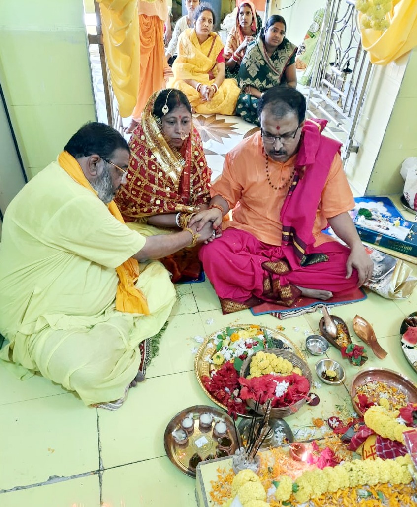 जमशेदपुर: बिरसानगर जोन नंबर 2 बी, मोहरदा में नवनिर्मित मां पीताम्बरा मंदिर में श्री गणेश मूर्ति प्राण प्रतिष्ठा, वास्तु पूजन और मां पीताम्बरा प्राण प्रतिष्ठा का तीन दिवसीय धार्मिक अनुष्ठान जारी है. इस अनुष्ठान के दूसरे दिन, गुरुवार को श्री गणेश मूर्ति प्राण प्रतिष्ठा, वास्तु पूजन और मां पीताम्बरा प्राण प्रतिष्ठा का अनुष्ठान एवं हवन किया गया.