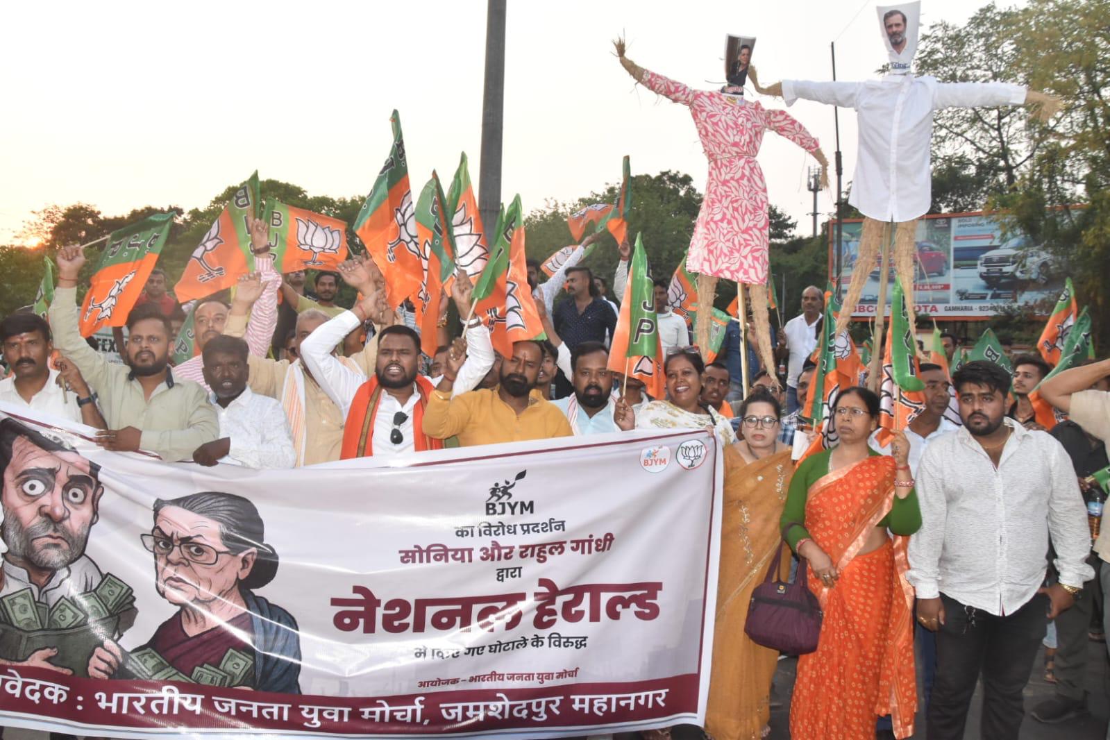जमशेदपुर: नेशनल हेराल्ड घोटाले में प्रवर्तन निदेशालय (ED) द्वारा कांग्रेस की पूर्व अध्यक्ष सोनिया गांधी और राहुल गांधी के विरुद्ध चार्जशीट दाखिल किए जाने के बाद भारतीय जनता युवा मोर्चा की ओर से आज साकची जुबली पार्क गोलचक्कर पर विरोध प्रदर्शन किया गया। भाजपा युवा मोर्चा के जिला अध्यक्ष नीतीश कुशवाहा के नेतृत्व में कांग्रेस नेताओं का पुतला दहन कर विरोध दर्ज कराया गया।