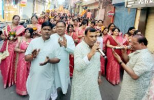 जमशेदपुर: श्री राणी सती सत्संग समिति जुगसलाई द्वारा आयोजित मंगसीर नवमी महोत्सव के पहले दिन बुधवार को भव्य कलश शोभा यात्रा निकाली गई। सुबह 7 बजे गणेश और कलश पूजन के साथ कार्यक्रम की शुरुआत हुई। पंडित बजरंग शर्मा ने विधिपूर्वक पूजा कराई।