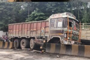 घटना के समय एक बोलेरो वाहन तेज रफ्तार में ट्रक को ओवरटेक करने की कोशिश कर रहा था। टक्कर से बचाने के दौरान टायर फटने से ट्रक का संतुलन बिगड़ गया। गनीमत रही कि उस समय सड़क पर ज्यादा वाहन नहीं थे, अन्यथा बड़ी दुर्घटना हो सकती थी।