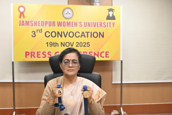 जमशेदपुर: जमशेदपुर महिला विश्वविद्यालय में 19 नवंबर को होने वाले तृतीय दीक्षांत समारोह की तैयारियों को लेकर शनिवार को सिदगोड़ा परिसर में प्रेस कॉन्फ्रेंस आयोजित की गई। कुलपति प्रो. (डॉ.) अंजिला गुप्ता के निर्देशन में हुई इस बैठक में विश्वविद्यालय के सभी प्रमुख अधिकारी मौजूद रहे। प्रेस वार्ता में शहर के प्रमुख प्रिंट और इलेक्ट्रॉनिक मीडिया प्रतिनिधियों ने हिस्सा लिया।