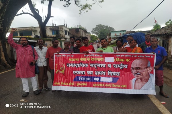 रांची: महात्मा गांधी जयंती के अवसर पर राहे में झारखंड राज्य किसान सभा के तत्वावधान में साम्प्रदायिक सद्भाव और राष्ट्रीय एकता दिवस मनाया गया. कार्यक्रम की शुरुआत महात्मा गांधी के चित्र पर माल्यार्पण और श्रद्धासुमन अर्पित करने से हुई।