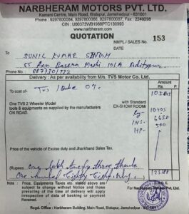 26 जुलाई 2025 को स्टेट बैंक ऑफ इंडिया के फाइनेंस से ₹1,05,645 की पूरी राशि का भुगतान कर बिल नंबर NMG/EV/9/25-26 प्राप्त किया गया. सब कुछ तय प्रक्रिया के अनुसार था. लेकिन जब डिलीवरी की बारी आई, तो शोरूम ने न सिर्फ तय रंग देने से इनकार किया, बल्कि ग्राहक द्वारा दी गई शर्तों को भी नज़रअंदाज़ कर दिया.