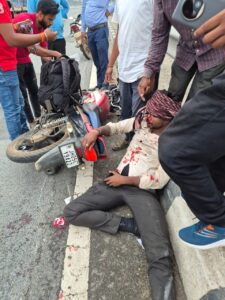 चांडिल: चांडिल अनुमंडल क्षेत्र के टाटा-रांची मुख्य राज्य मार्ग एनएच-33 पर स्थित चिलगु-सहरबेड़ा के पास शनिवार को एक गंभीर सड़क दुर्घटना हुई. घाटशिला के सुरदा मुसाबनी निवासी प्रकाश चंद्रा पाल बाइक से गुजर रहे थे, तभी उनका वाहन अनियंत्रित होकर डिवाइडर से टकरा गया. हादसे में वह बुरी तरह घायल हो गए और शरीर से काफी खून बहने लगा.