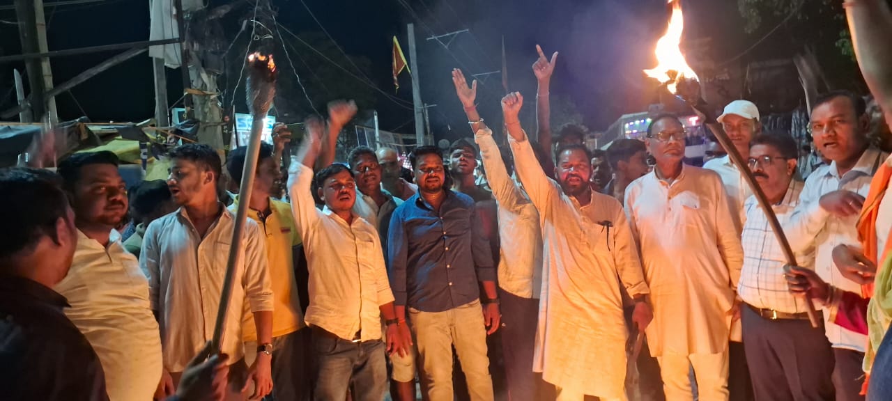 हल्दीपोखर के बजरंगबली मंदिर से शुरू होकर यह मशाल जुलूस ओड़िशा रोड होते हुए बांग्ला मध्य विद्यालय तक निकाला गया. “पाकिस्तान मुर्दाबाद”, “आतंकवाद मुर्दाबाद”, जैसे नारों से वातावरण गूंज उठा. जुलूस में शामिल लोग पहलगाम में मारे गए निर्दोष पर्यटकों के लिए न्याय की मांग कर रहे थे.