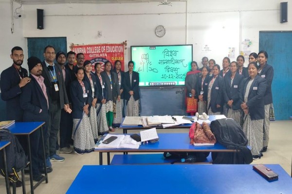 पोटका:  रंभा कॉलेज ऑफ़ एजुकेशन में बुधवार को राष्ट्रीय सेवा योजना (एनएसएस) की पहल पर अंतरराष्ट्रीय मानवाधिकार दिवस उत्साहपूर्वक मनाया गया। कार्यक्रम का शुभारंभ प्रोग्राम ऑफिसर डॉ. भूपेश चंद्र के व्याख्यान से हुआ। उन्होंने बताया कि मानवाधिकार प्रत्येक व्यक्ति को जन्म से प्राप्त होते हैं। इसलिए न केवल अपने अधिकारों की रक्षा करना जरूरी है, बल्कि दूसरों के अधिकारों का सम्मान करना भी हमारी जिम्मेदारी है।