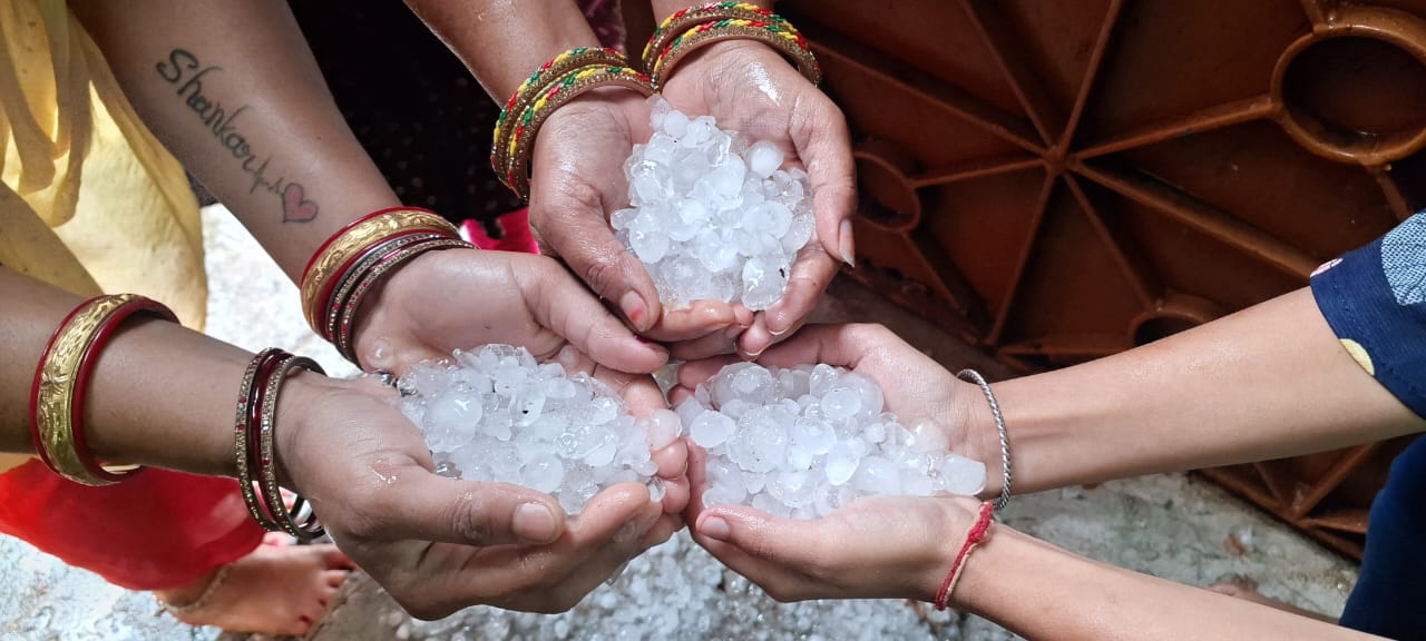 पोटका : पोटका क्षेत्र के हाता, हल्दीपोखर एवं आसपास के इलाकों में दोपहर के बाद अचानक आसमान में काले बादल छा गए, जिसके बाद तेज हवाओं के साथ बज्रपात होने लगी वहीं कुछ देर बाद तेज बारिश के साथ ओलावृष्टि से पूरा क्षेत्र में मौसम सुहावना हो गया हालांकि इस ओलावृष्टि से सब्जी के फसल को भारी नुकसान पहुंचाने का उम्मीद जताया जा रहा है वहीं पेड़ पौधों के सारे कोमल पत्ते ओलावृष्टि के कारण झड़ गए, किसान लखन मंडल ने कहा कि इस ओलावृष्टि से टमाटर, नेनुआ, साग, बेगम आदि सब्जी की फसलों को भारी नुकसान होने का उम्मीद है।