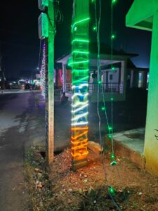 सरायकेला: सरायकेला-खरसावां जिले के कपाली नगर परिषद क्षेत्र में राष्ट्रीय ध्वज के प्रतीक तिरंगे रंग की लाइट लगाने में हुई भारी लापरवाही ने विवाद खड़ा कर दिया है। कमारगोड़ा स्थित बिजली खंभों पर लगाई गई लाइटें उल्टी दिशा में जलीं — जहां ऊपर केसरिया रंग होना चाहिए था, वहां हरा जल रहा है और नीचे हरे की जगह केसरिया। यह दृश्य दुर्गा पूजा पंडाल के पास साफ दिखाई दे रहा है, जिससे स्थानीय लोगों की भावनाएं गहराई से आहत हुई हैं।