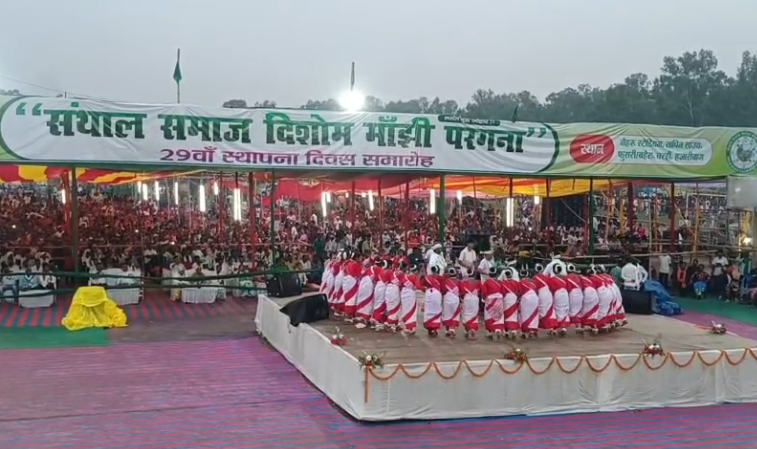 तापिन साऊथ नेहरू स्टेडियम मे संथाल समाज दिशोम मांझी परगना सामाजिक संगठन ने हर्षो उल्लास के साथ मनाया 29 वां स्थापना दिवस । बतौर मुख्य अतिथि के रूप मे पहुंचे झारखण्ड सरकार के मंत्री रामदास सोरेन व दर्जा प्राप्त मंत्री फागु बेसरा । आयोजन मे मुख्य रूप से आदिवासी समाज के विकास के लिए किया गया मंथन । साथ ही सरना धर्म कोड को पहले लागु करने के लिए केंद्र सरकार से किया गया मांग ।