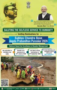 रामगढ़: भारत सरकार ने सुभाष चंद्र बोस आपदा प्रबंधन पुरस्कार 2026 के लिए नामांकन प्रक्रिया प्रारंभ कर दी है. यह एक प्रतिष्ठित वार्षिक राष्ट्रीय पुरस्कार है, जो आपदा प्रबंधन के क्षेत्र में कार्यरत व्यक्तियों तथा संस्थानों द्वारा किए गए असाधारण योगदान को सम्मानित करता है.