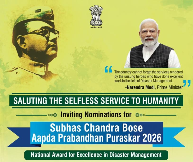 रामगढ़: भारत सरकार ने सुभाष चंद्र बोस आपदा प्रबंधन पुरस्कार 2026 के लिए नामांकन प्रक्रिया प्रारंभ कर दी है. यह एक प्रतिष्ठित वार्षिक राष्ट्रीय पुरस्कार है, जो आपदा प्रबंधन के क्षेत्र में कार्यरत व्यक्तियों तथा संस्थानों द्वारा किए गए असाधारण योगदान को सम्मानित करता है.