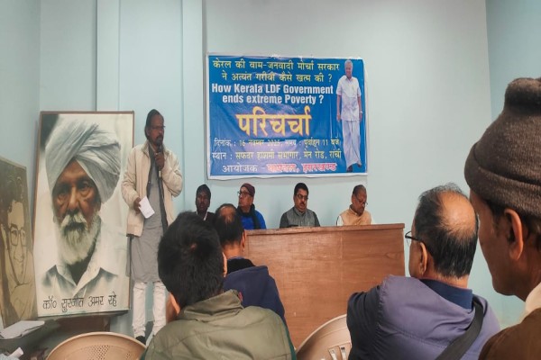 रांची: रांची के सफदर हाशमी सभागार में शनिवार को “केरल की वाम-जनवादी मोर्चा सरकार ने अत्यंत गरीबी कैसे दूर की” विषय पर परिचर्चा आयोजित की गई।