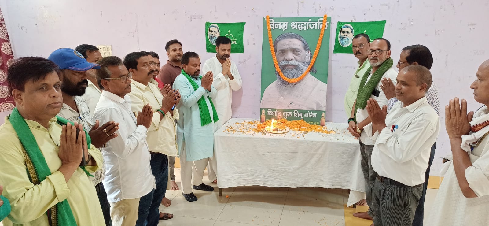 उधर, झामुमो जिला कमेटी की ओर से बैद्यनाथ विहार में आयोजित शोकसभा में जिलाध्यक्ष संजय शर्मा के नेतृत्व में श्रद्धांजलि अर्पित की गई। इस मौके पर वरिष्ठ नेता सुरेश साह, सूरज झा, लड्डू नरौने, मनोज दास, अजय नारायण मिश्रा, दिलावर हुसैन और नंदकिशोर दास ने गुरुजी को याद करते हुए उनके विचारों और संघर्षों को जन-जन तक पहुंचाने का संकल्प लिया।