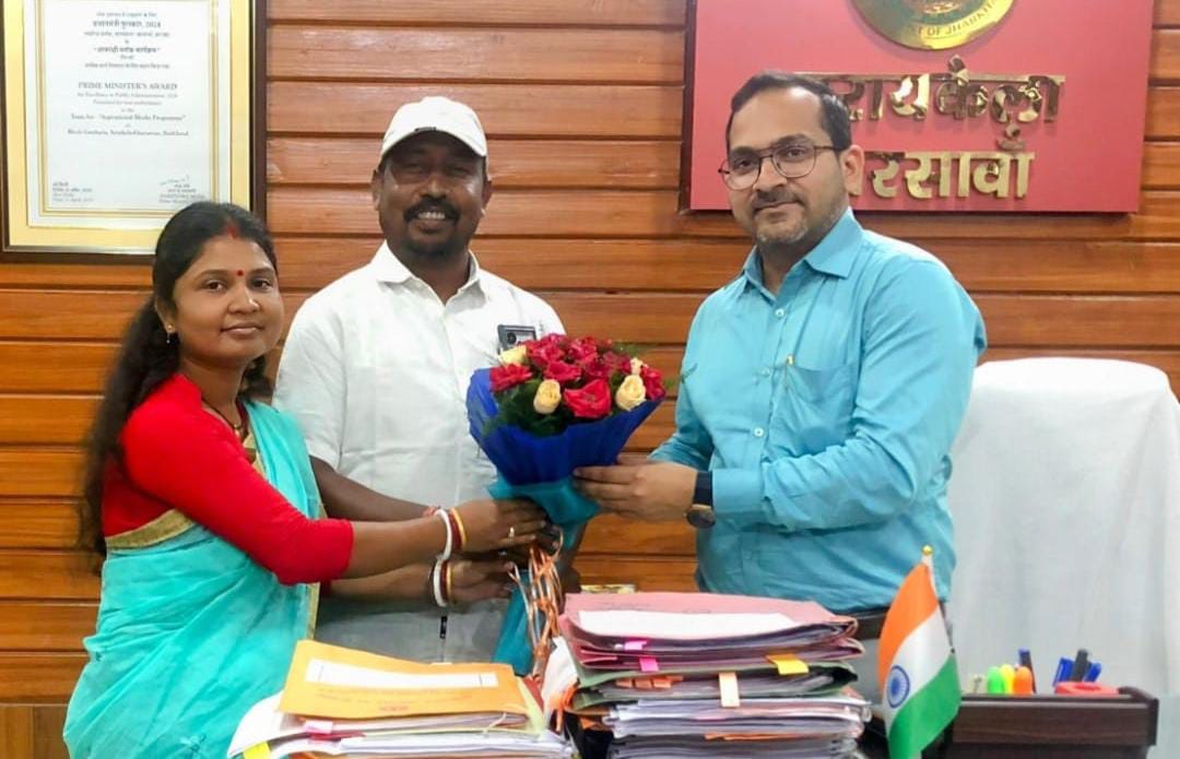 Saraikela: उपायुक्त नीतीश कुमार सिंह का जिला परिषद अध्यक्ष और उपाध्यक्ष ने गुलदस्ता भेंट कर स्वागत किया