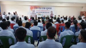 कार्यक्रम में क्षेत्र के सैकड़ों नागरिकों, विद्यार्थियों और बुद्धिजीवियों ने भाग लिया और ‘एक देश, एक चुनाव’ जैसे संवेदनशील मुद्दे पर गंभीर चर्चा की। कार्यक्रम ने क्षेत्र में लोकतांत्रिक सुधार की दिशा में एक सशक्त संवाद की भूमिका निभाई।