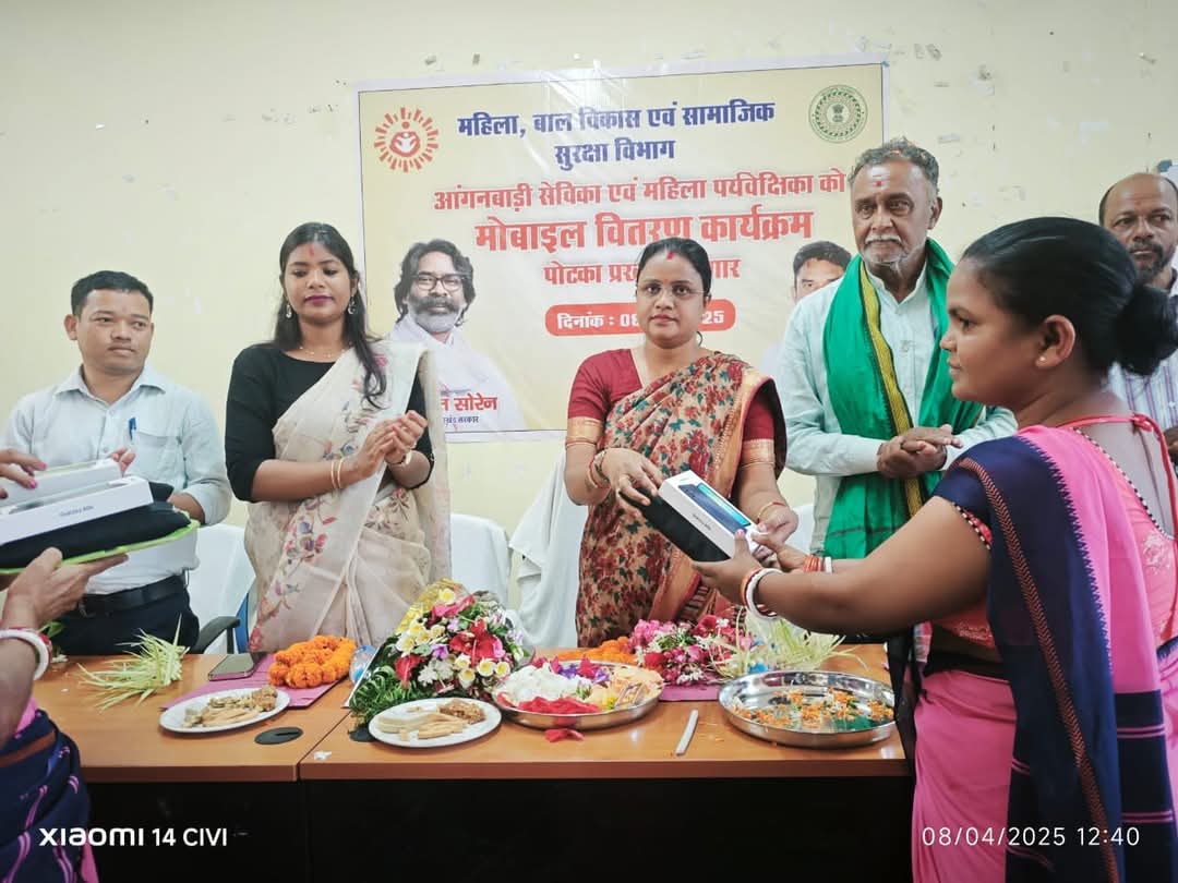 पोटका: पोटका प्रखंड में आंगनबाड़ी सेवाओं को आधुनिक स्वरूप देने की दिशा में झारखंड सरकार द्वारा बड़ा कदम उठाया गया है. बाल विकास एवं सामाजिक सुरक्षा विभाग की ओर से आयोजित एक समारोह में पोटका के 253 आंगनबाड़ी केंद्रों की सेविकाओं और सुपरवाइजरों को स्मार्टफोन वितरित किए गए. इस अवसर पर मुख्य अतिथि पोटका विधायक संजीव सरदार की अनुपस्थिति में उनकी धर्मपत्नी रानीता सरदार बतौर प्रतिनिधि कार्यक्रम में शामिल हुईं. उन्होंने सेविकाओं को विधायक का संदेश सुनाया और अपने हाथों से स्मार्टफोन का वितरण किया.