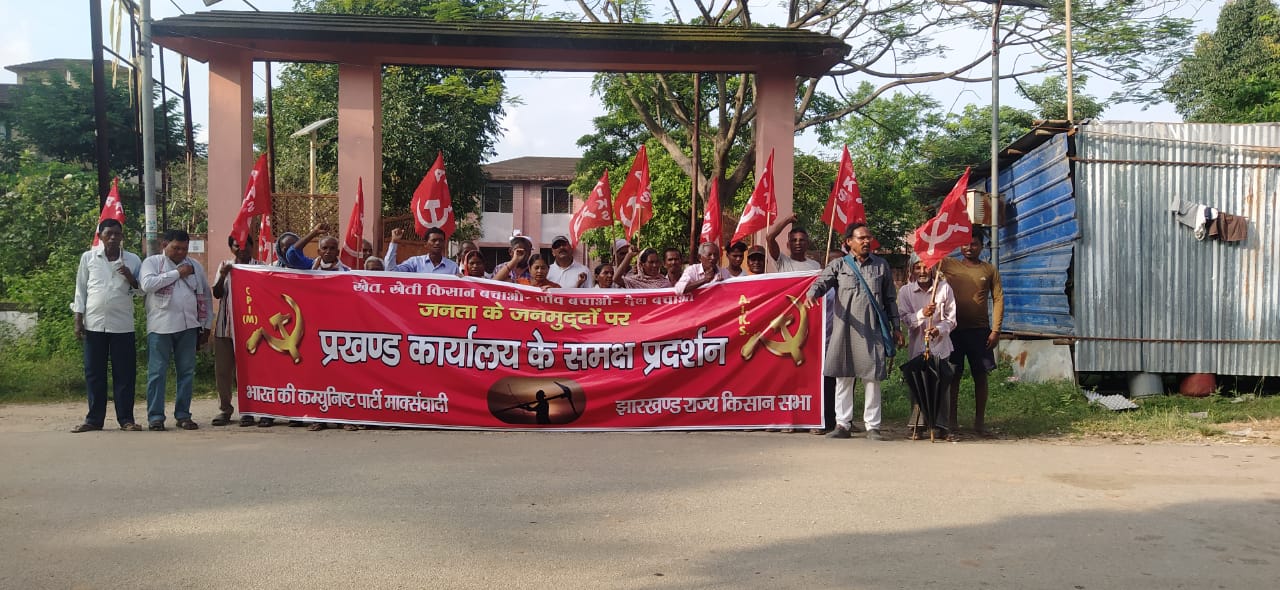 रांची: भारत की कम्युनिस्ट पार्टी (मार्क्सवादी) और झारखंड राज्य किसान सभा के बैनर तले सोमवार को राहे प्रखंड मुख्यालय के सामने किसानों ने जोरदार प्रदर्शन किया। इस दौरान यूरिया खाद की लूट, भ्रष्टाचार, मुआवजा, मनरेगा, बिजली, शिक्षा, स्वास्थ्य और रोजगार जैसे मुद्दों को उठाते हुए मुख्यमंत्री हेमंत सोरेन के नाम 23 सूत्री मांगपत्र प्रखंड विकास पदाधिकारी को सौंपा गया।