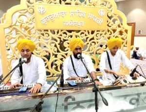 सुबह अखंड पाठ साहिब की समाप्ति के बाद कीर्तन दरबार का शुभारंभ हुआ. सिख स्त्री सत्संग सभा और सुखमणि साहिब कीर्तनी जत्था की बीबियों द्वारा मधुर गुरबाणी गायन प्रस्तुत किया गया. भाई संदीप सिंह (गुरदासपुर) और साकची गुरुद्वारा के रागी जत्थे ने भी भावपूर्ण कीर्तन से संगत को आत्मिक आनंद प्रदान किया.