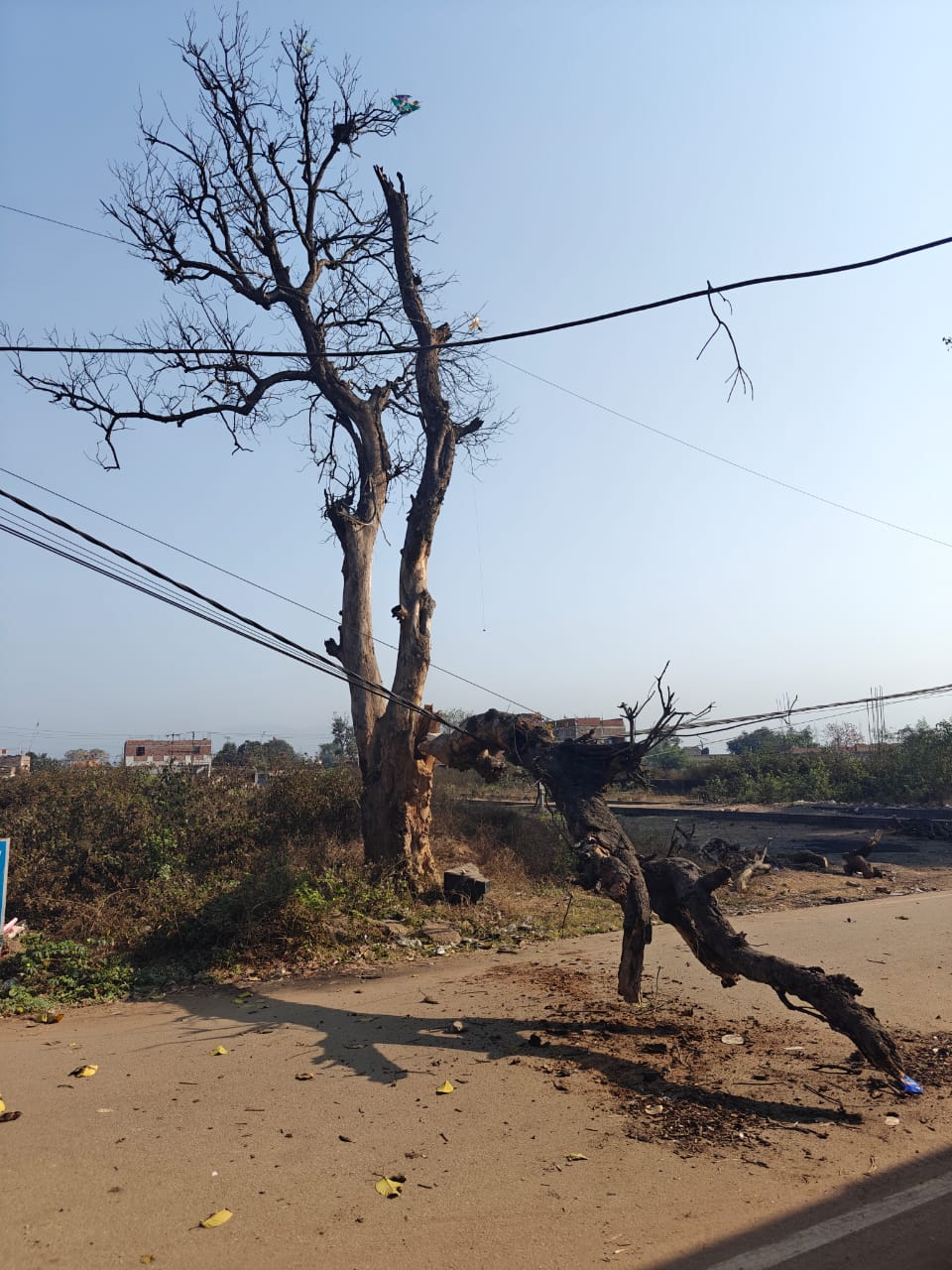 Gamharia:धीराजगंज में बिजली के तार पर टहनी गिरने से आवागमन रहा बाधित
