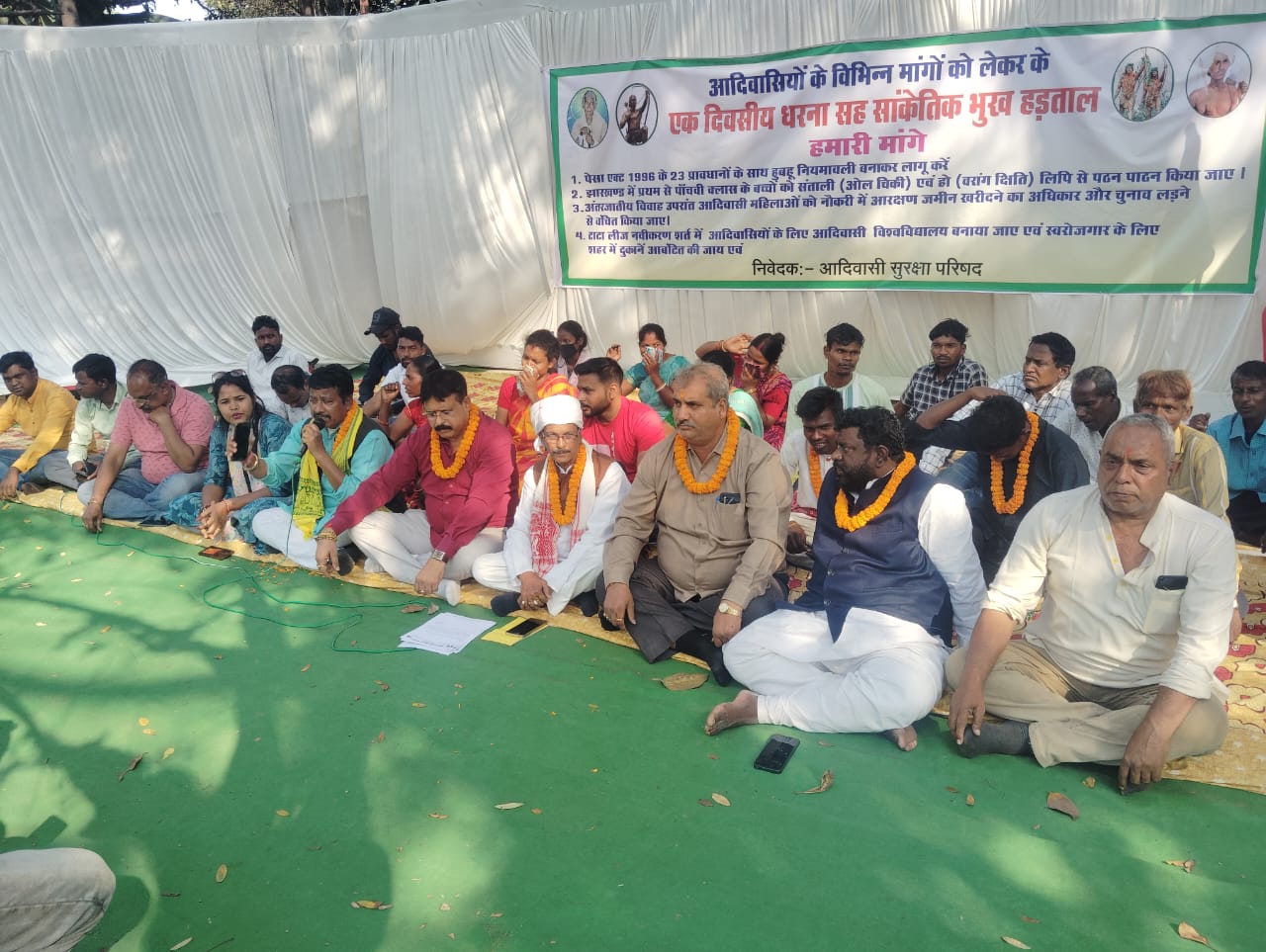भूख हड़ताल को संबोधित करते हुए राम सिंह मुंडा ने कहा कि झारखंड सरकार की नीयत आदिवासी समुदाय के प्रति ठीक नहीं है. उन्होंने कहा कि यदि सरकार की मंशा सही होती तो “आबुआ दिशूम राज” का नारा देकर सत्ता में आई सरकार, पेसा कानून को लागू करने में कोई देर नहीं करती. खरसावां जिला अध्यक्ष सीताराम हांसदा ने सुझाव दिया कि झारखंड के प्रत्येक विद्यालय में ऑल चिकी संथाली और हो भाषा वारंग छीती लिपि से क्लास 1 से लेकर 5वीं तक पढ़ाई शुरू की जाए और इसके लिए शिक्षकों की नियुक्ति की जाए. भाजपा अनुसूचित जनजाति मोर्चा के कोषाध्यक्ष काजू सांडील ने आरोप लगाया कि झारखंड सरकार आदिवासियों को ठगने का काम कर रही है. उनका कहना था कि सरकार आदिवासी समुदाय के अधिकारों का हनन कर रही है.