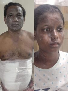 आग की चपेट में आने से घायल होटल का कर्मचारी तपन नामता और सोनिया विसोय