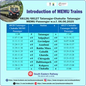 चाकुलिया-टाटानगर मेमू ट्रेन: सप्ताह में छह दिन सेवा