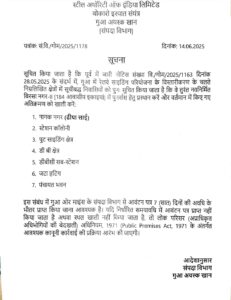 गुवा: गुवा स्थित स्टील अथॉरिटी ऑफ इंडिया लिमिटेड (सेल) प्रबंधन द्वारा शुक्रवार को एक महत्वपूर्ण नोटिस जारी करते हुए उन निवासियों को चेतावनी दी गई है, जो रेलवे साइडिंग विस्तार योजना के तहत विस्थापन के दायरे में आते हैं. सेल प्रबंधन ने पूर्व में जारी नोटिस संख्या वि/गोम 2025/1163, दिनांक 28 मई 2025 का हवाला देते हुए स्पष्ट किया है कि संबंधित क्षेत्र के निवासियों को तत्काल खाली करना होगा.