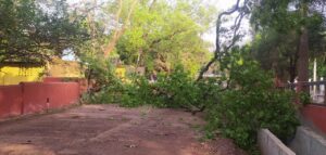 पश्चिमी सिंहभूम: शनिवार की देर शाम गुवा में अचानक चली तेज आंधी ने भारी नुकसान पहुंचाया. सेल कार्यालय के समीप एक विशाल नीम का पेड़ मुख्य सड़क पर गिर गया, जिससे मार्ग पूरी तरह अवरुद्ध हो गया.गिरते समय पेड़ की बड़ी टहनियां ऊपर से गुजर रहे बिजली के तारों में उलझ गईं. इससे क्षेत्र की विद्युत आपूर्ति बाधित होने की आशंका पैदा हो गई.