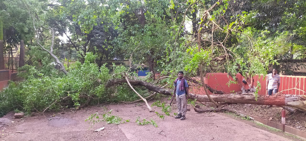 पश्चिमी सिंहभूम: शनिवार की देर शाम गुवा में अचानक चली तेज आंधी ने भारी नुकसान पहुंचाया. सेल कार्यालय के समीप एक विशाल नीम का पेड़ मुख्य सड़क पर गिर गया, जिससे मार्ग पूरी तरह अवरुद्ध हो गया.गिरते समय पेड़ की बड़ी टहनियां ऊपर से गुजर रहे बिजली के तारों में उलझ गईं. इससे क्षेत्र की विद्युत आपूर्ति बाधित होने की आशंका पैदा हो गई.